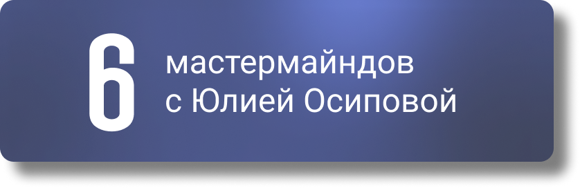 6 мастермайндов с Юлией Осиповой. Вы легко внедрите свою жизнь новое поведение и новые эмоциональные состояния. Как следствие, получать реальные изменения в своей жизни